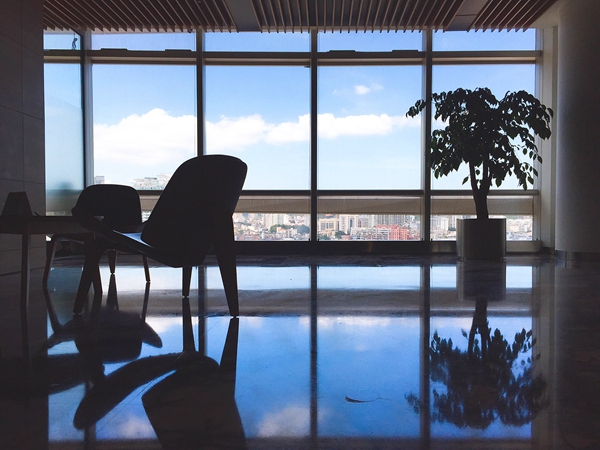 “這棟樓是1000多名工人和整個(gè)管理層辛苦的汗水澆灌而成的,”柯希杰說:“當(dāng)年外幕墻全包起來的時(shí)候正值夏天,整個(gè)大廈內(nèi)電梯、空調(diào)都還沒完成,大廈內(nèi)部是非常熱的,幾十層同時(shí)在裝修施工就一部貨梯根本不夠用,大多數(shù)工人施工上下樓基本都靠走路,條件比較艱苦,還經(jīng)常有工人會(huì)中暑?!庇袀€(gè)畫面讓柯希杰印象深刻,他時(shí)常與人談起,“有一次我到地下室去巡查,看到工人在卸水泥,卸完水泥的他整身整臉都是水泥灰,只看得到眼睛和嘴巴,工人瞬間沒了方向,不知道該怎么走。當(dāng)時(shí)這個(gè)畫面令我心酸又感動(dòng),不自覺眼淚壓眶而出,很感謝很敬佩他們的付出?!?/p>