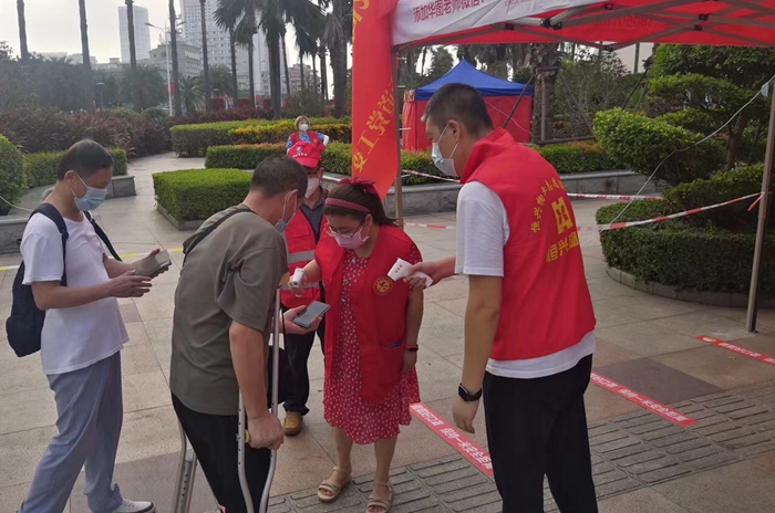 疫情當(dāng)前,真的很希望自己能做點(diǎn)什么,正好看到集團(tuán)招募志愿者,就參加了。我做志愿者的那天是9月15日下午,在那做核酸引導(dǎo)員,那會(huì)兒因?yàn)橄铝艘粓?chǎng)雨,已經(jīng)算很涼快。我自己去海濱公園點(diǎn)進(jìn)行采樣時(shí),看到很多醫(yī)護(hù)人員特別辛苦,天氣熱太陽曬,他們都是汗流浹背的,很心疼。所以我知道那些工作人員比我支援的幾個(gè)小時(shí)辛苦多了。