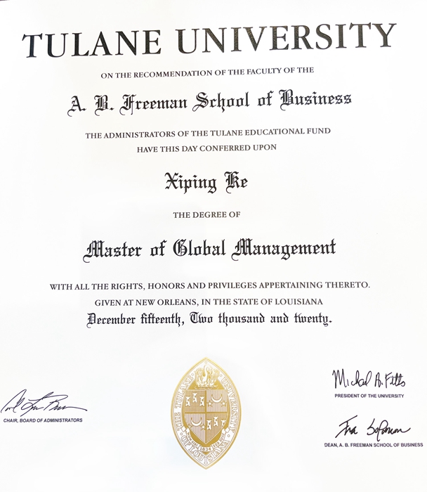 近日,廈門恒興集團董事長柯希平先生從廈門大學-杜蘭大學GEMBA第四屆順利畢業(yè),獲杜蘭大學授予全球管理碩士學位。因疫情原因,畢業(yè)典禮由杜蘭大學委托廈門大學舉辦,廈門大學常務(wù)副書記李建發(fā)出席畢業(yè)典禮,并親自頒發(fā)學位證書。